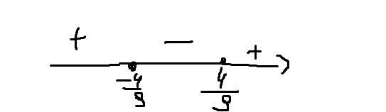 По методу интервалов: все обнуляется при х = 4/9 и x=-4/9.