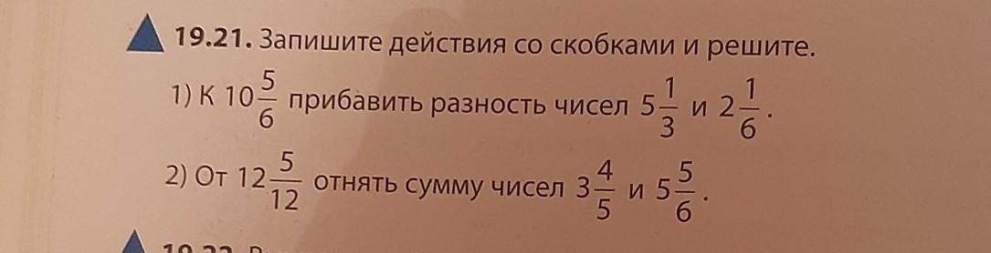 19.21 . 1) 10 5/6 + ( 5 1/3 - 2 1/6 ) = 10 5/6 + ( 5 2/6 - 2 1/6 ) = 10 5/6 +