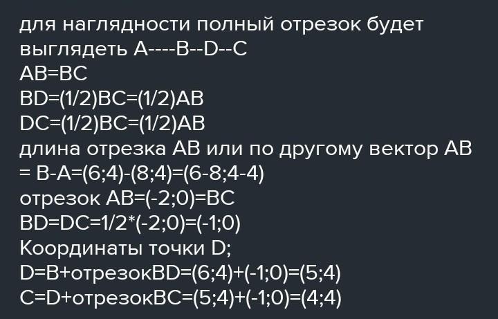 Найди координаты точек C и D, если известно, что точка B — середина отрезка AC, а точка D — середина отрезка BC.