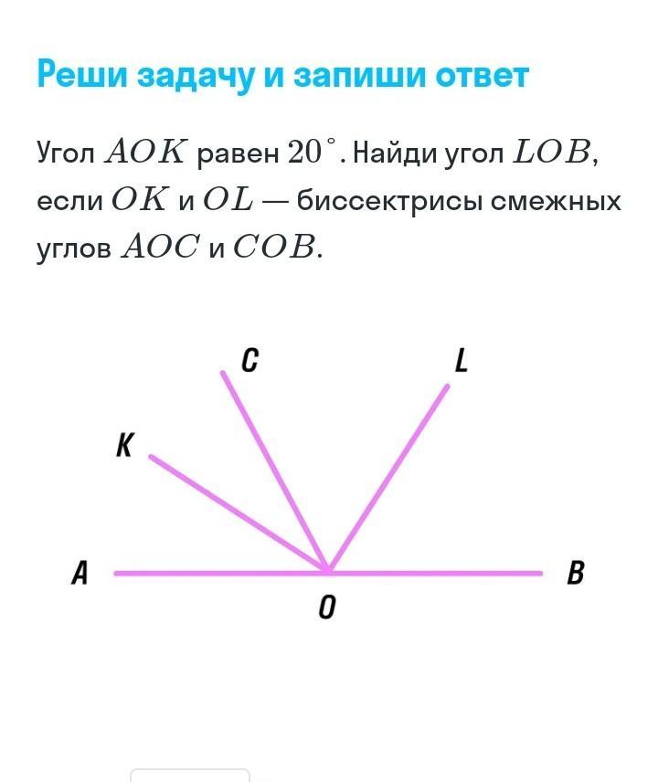 3)угCOL = угLOB; угCOB = угCOL + уг LOB, следовательно, угLOB = угCOB/2 = 140/2 = 70°