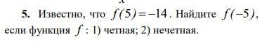 f (5) -14. Найдите f (-5), если функция f : 1) четная; 2) нечетная.