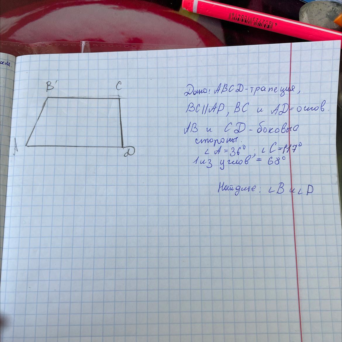 Сумма углов,прилежащих к одной боковой стороне,равна 180 градусов