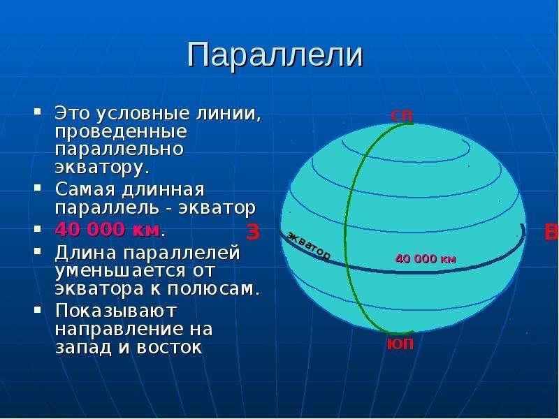 Самая длинная параллель это Экватор (0°)