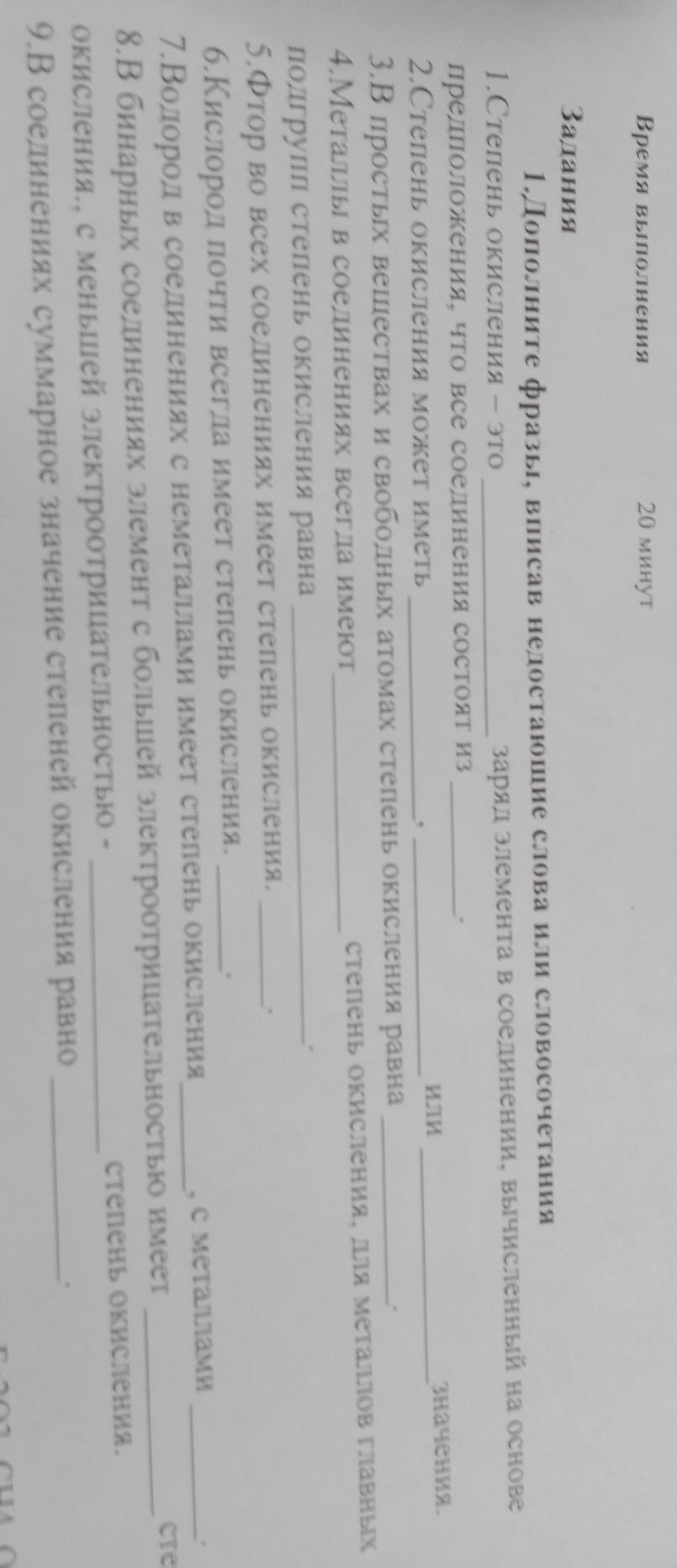 1. Степень окисления УСЛОВНЫЙ заряд элемента в соединении, вычисленный на основе предложения, что все соединения состоят из ПРЕДЛОЖЕНИЯ.