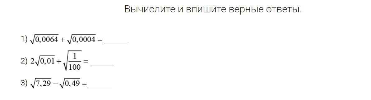 2)вытаскиваем 0,01 из под корня будет 0,1 уможаем на число перед корнем (2) получится 0,1×2=0,2,1/100 выйдет их под корня как 1/10,02=2/10=1/10+2/10=3/10