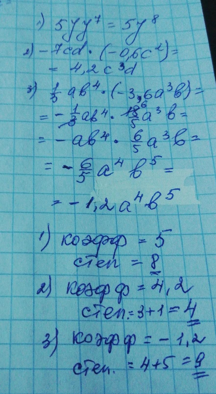 2. Представьте одночлен в стандартном виде. Назовите его коэффициент и степень: