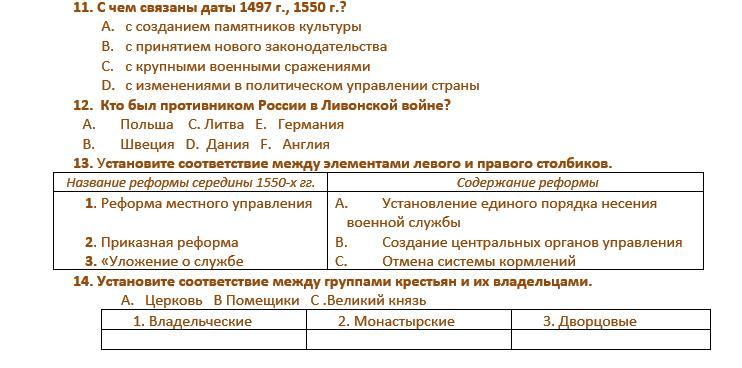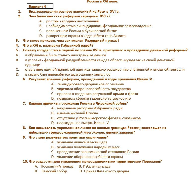 История России в XVI веке, тест 7 класс, помогите пожалуйста