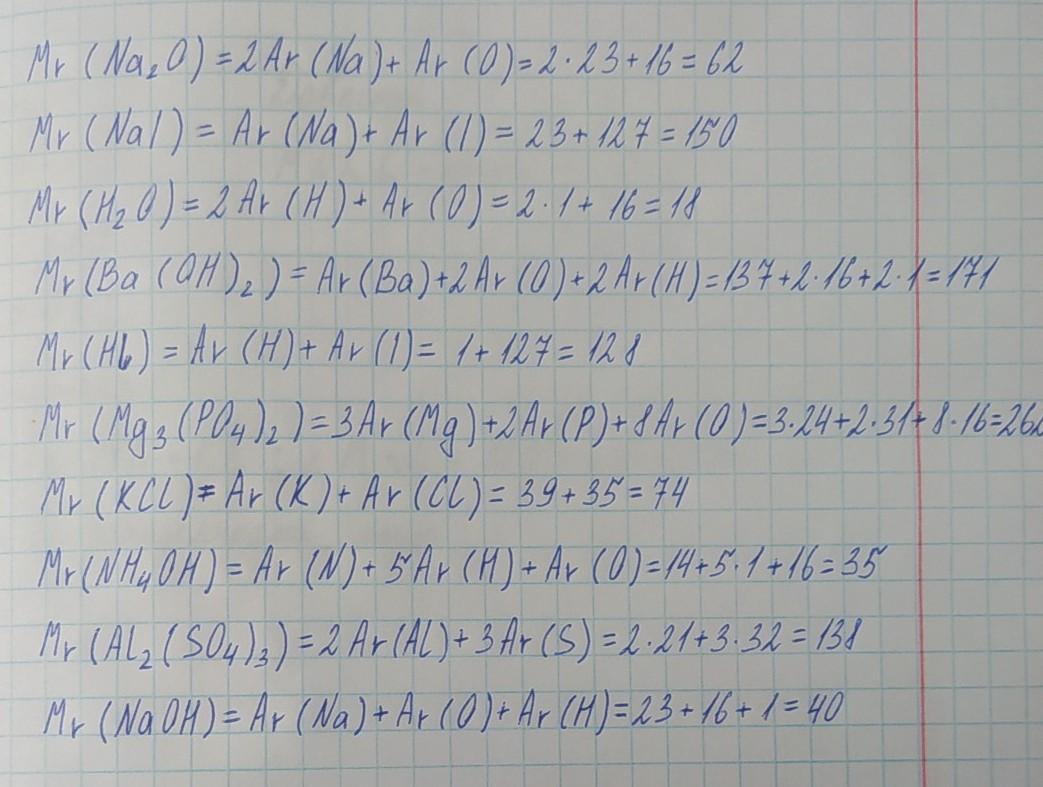 Нам потрібно додати маси всіх зазначених елементів (вони написані в періодичній системі). Маса Натрію (Na) = 23, множимо її на 2, оскільки Na2O, маса Оксигену (О) = 16. 2×23 + 16 = 62.