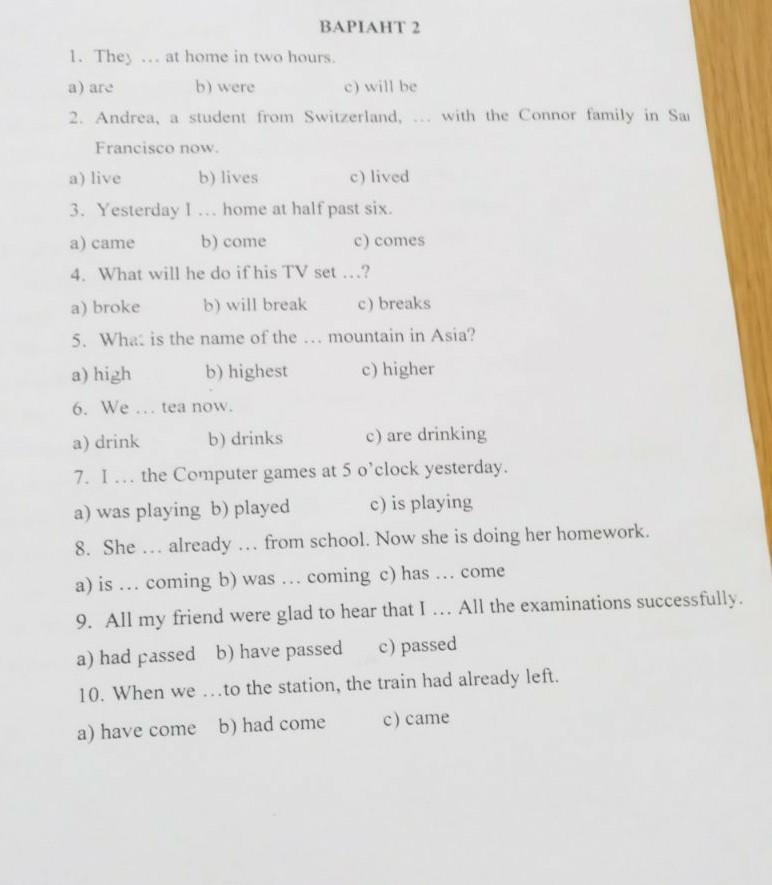 1) c 2) b 3) a 4) b 5) b 6) c 7) b 8) c 9) c 10) b