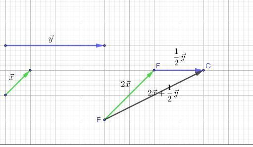 Начертите 2 неколлинеарных вектора x и у . Постройте вектор 2x+1/2y.