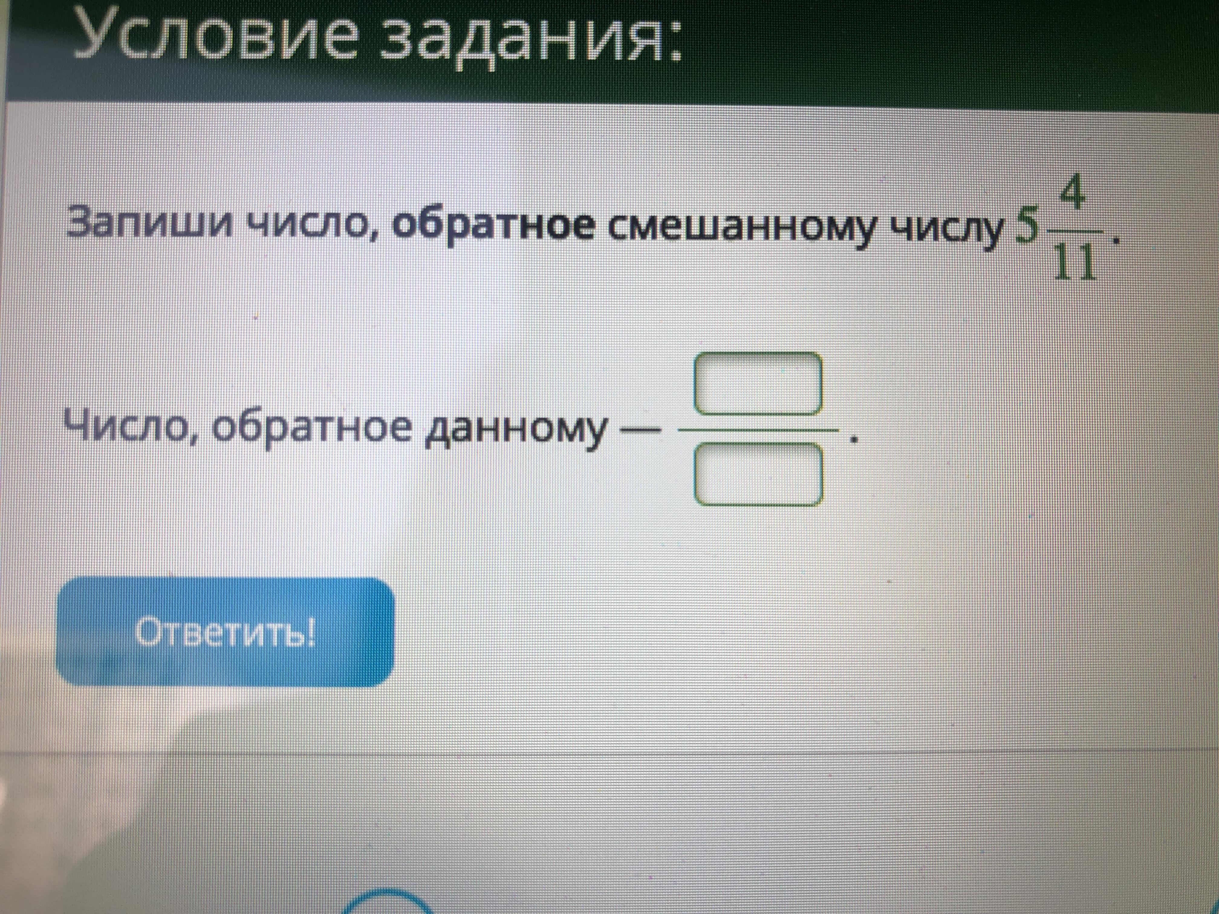 Хотя нет. 5×11+4=59, знаменатель остаётся тот же, получается 59/11