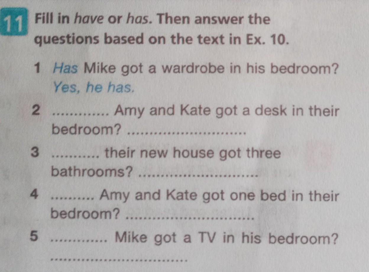 4. Have. No, they have two beds in their room. (No, they haven't)