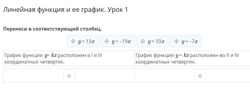 если коэффициент перед х положительный, то функция расположена в I и III четверти