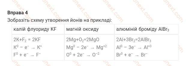 Зобразіть схему утворення йонів на прикладі: а) калій флуориду KF; б) магній оксиду MgO; в) алюміній броміду AlBr3