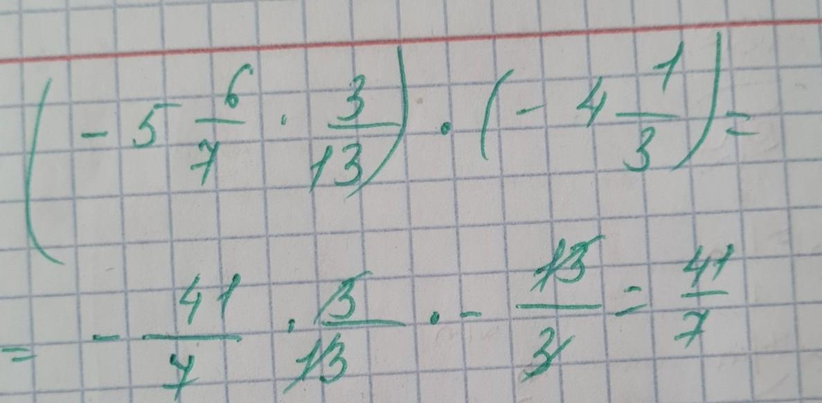 Задание 2. Найдите значение выражения: (-5 6/7 *3/13)*(-4 1/3)