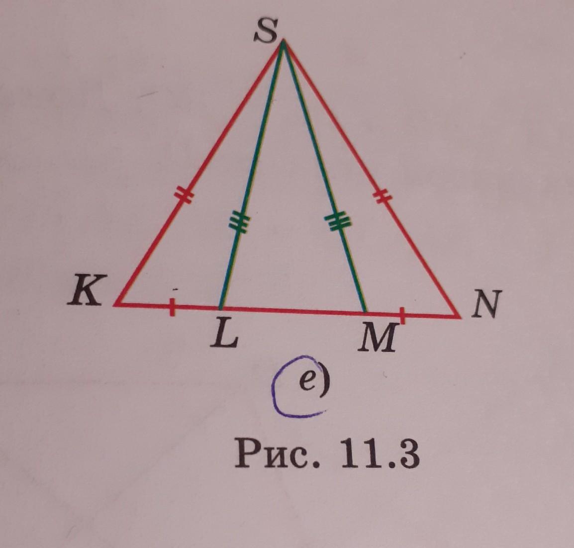упражнение 11.1 на рисунке 11.3 отмечены равные отрезки и равные углы Укажите на них равные треугольники под буквой Е