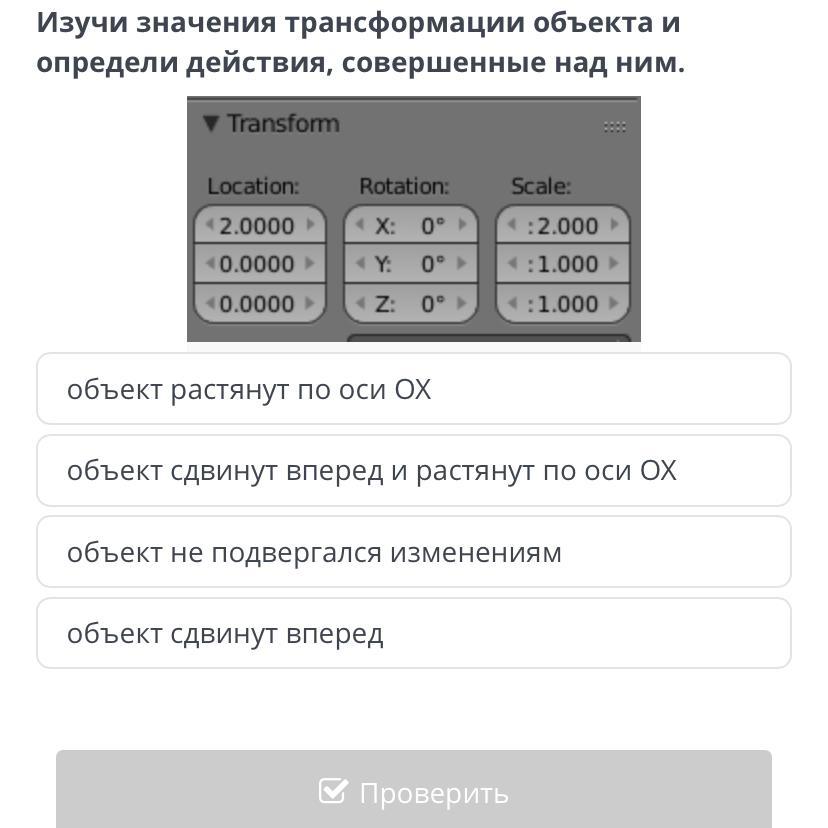 объект сдвинут вперед и растянут по оси OX