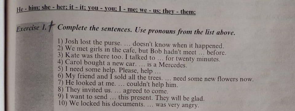 9) I want to send ... this present. They will be glad.