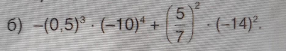 -(0,5)³·(-10)⁴+(5/7)²·(-14)²=-1/2³ ·2⁴·5⁴ +5²/7² ·7²·2²=-2·5⁴+5²·2²=-2·5²(5²-2)=-2·25(25-2)=-50·23=-1150