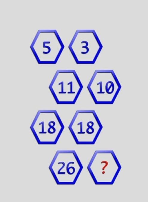 это последовательность, попробуй отнять 11-5=6, 18-11=7,26-18=8. Так же сделай и со вторым столбцом 10-3=7,18-10=8. Там где ? 18+9=27