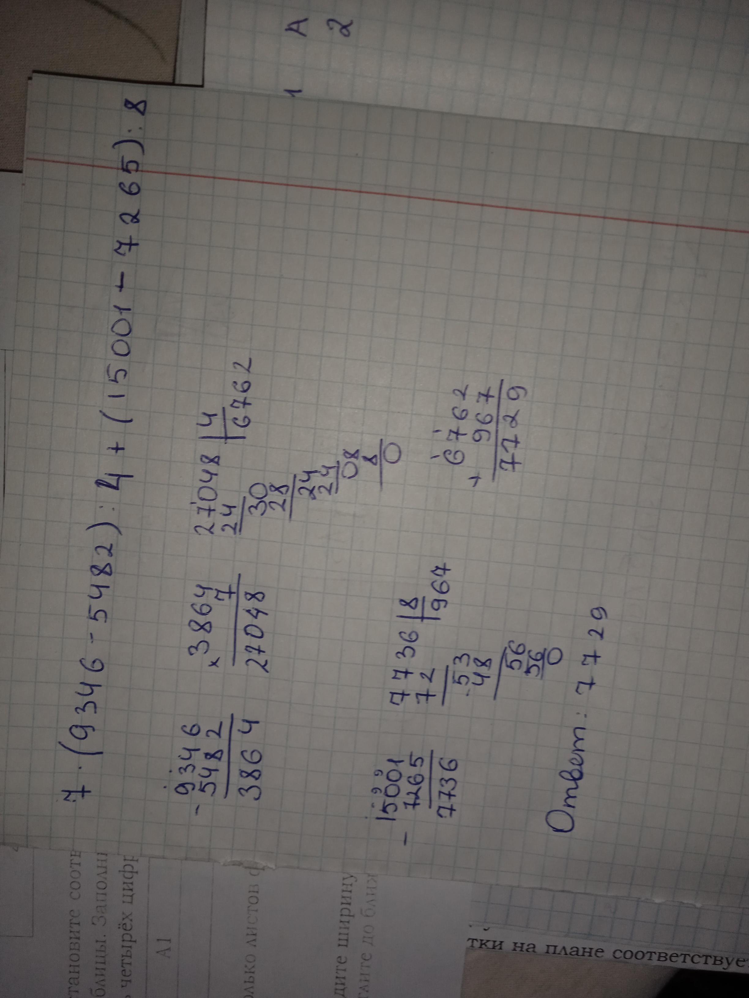 7 Найди значения выражений. 7 (9 346 - 5 482): 4 + (15 001 - 7 265) : 8. 8 217 + 10 . (6 906 - 6 843) : 5 - 7 064 - Столбиком
