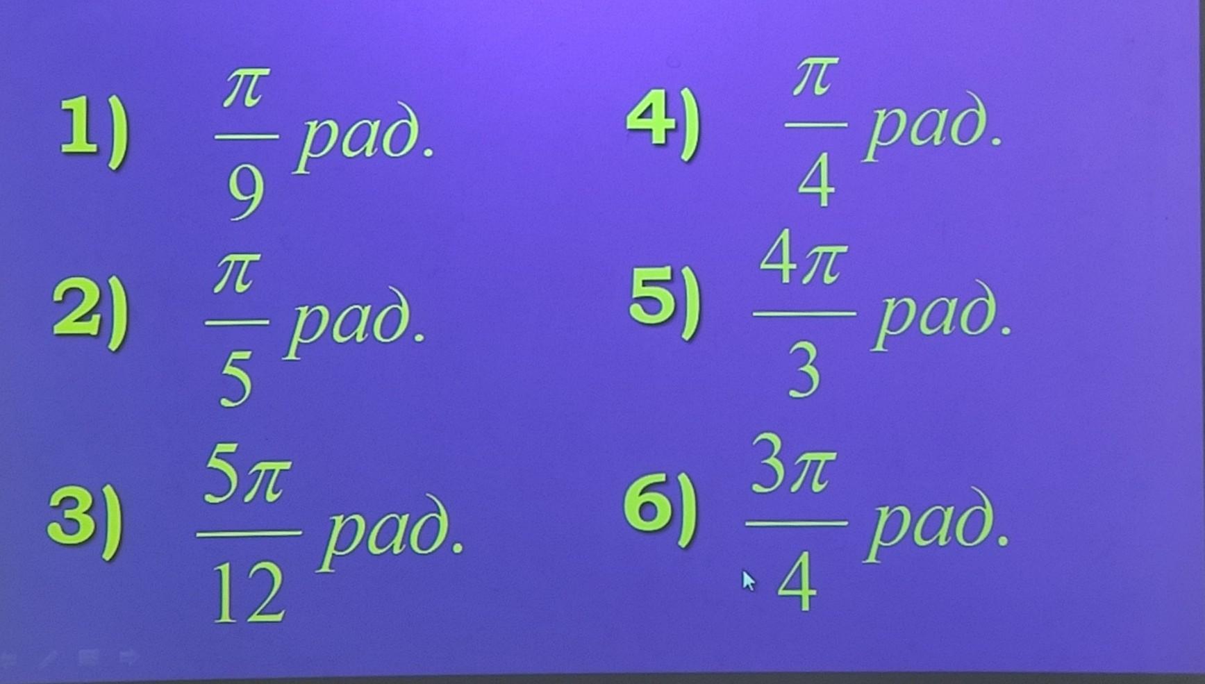 Ответ: Нужно просто умножить на 180/П