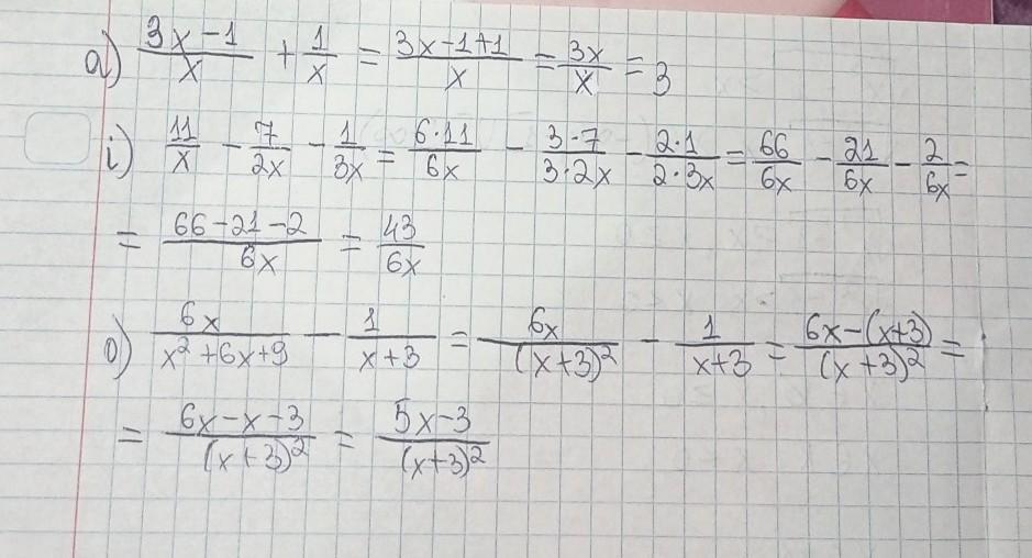i) тут общий множитель 6х, умнажаем все знаменатели до такого числа, должно получится отнимаем числитель, будет 43/6 или 7