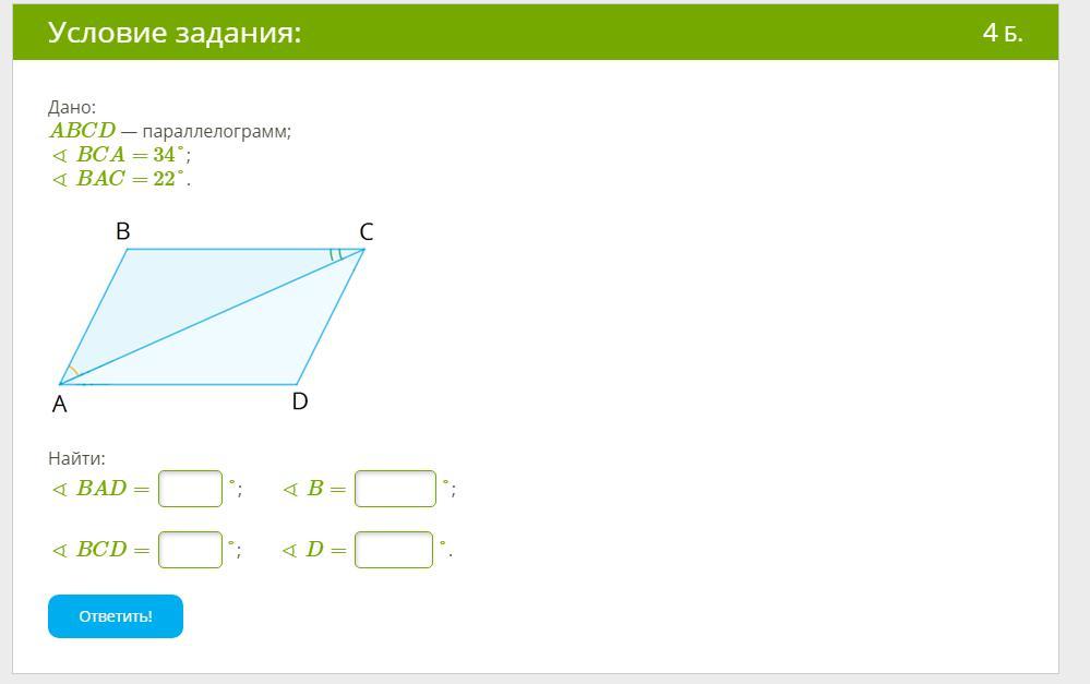 <ВАD=<BAC+<CAD=34°+22°=56°