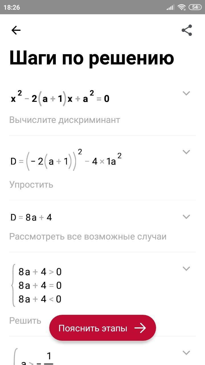 При каких значениях параметра a уравнение x²-2(a+1)x+a²=0 имеет действительные корни, сумма квадратов которых равна 4?