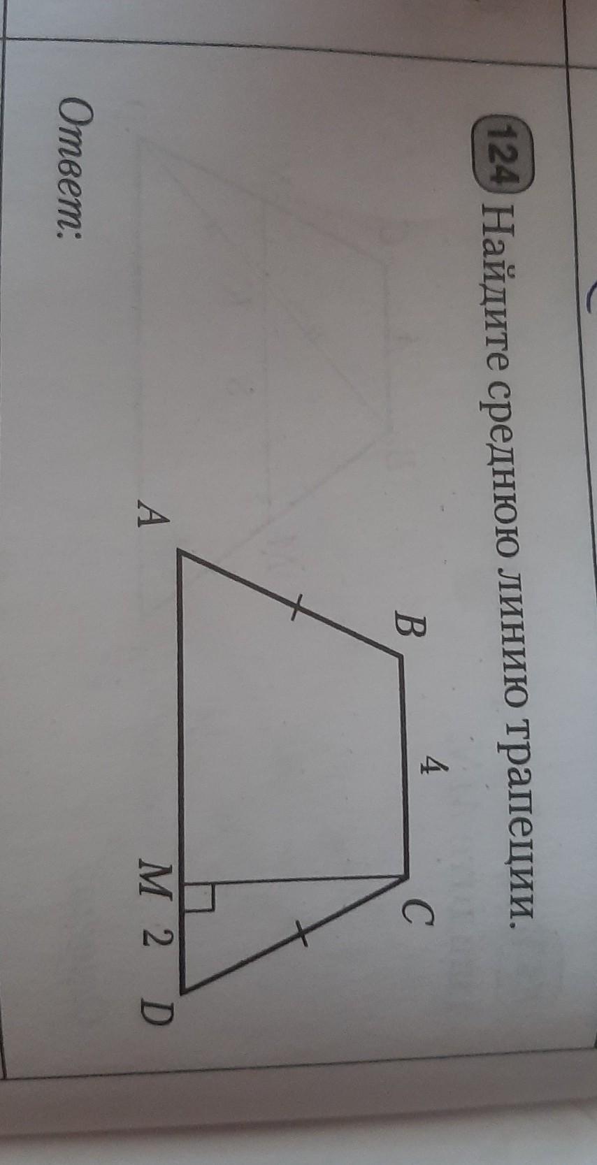 AD=2+2+4=8 средняя линия=8+4/2=6 см