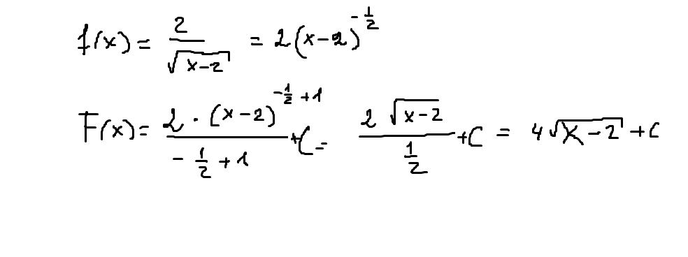 F(x) = 2 * √(x-2)/0,5 = 4√(x-2) + С