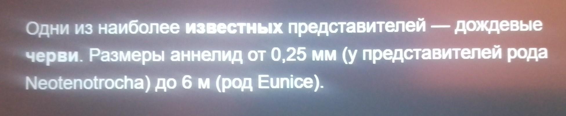 Одни из наиболее известных представителей — дождевые черви. Размеры аннелид от 0,25 мм (у представителей рода Neotenotrocha) до 6 м (род Eunice).