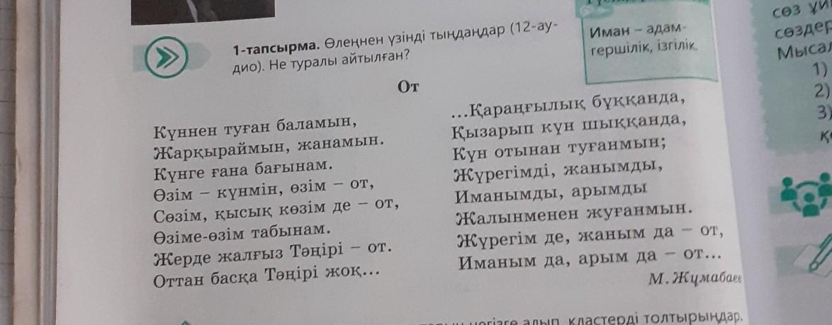 54б-1т- Өлеңді мәнерлеп оқы. -Ақын кімді отқа теңейді? -Неліктен? (2-інші шумақтан 3 мысал келтіріңдер