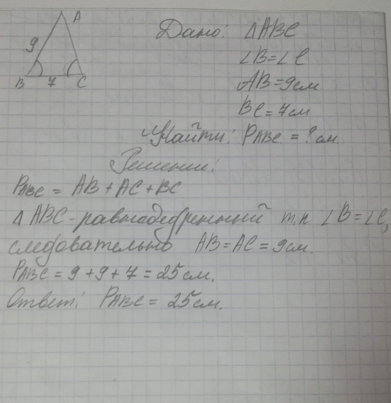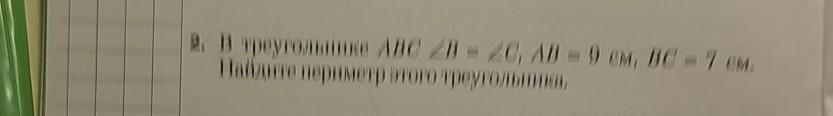 2. В треугольнике ABC B = C, AB = 9 см, ВС = 7 см. Найдите периметр этого треугольника.