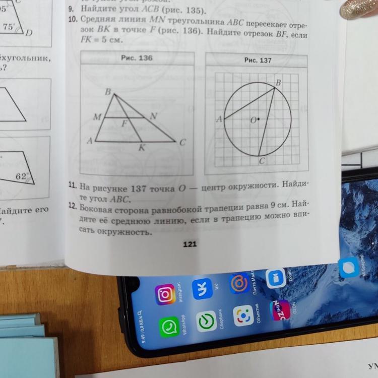 <АВС=<АОС/2=90°/2=45° вписанный угол равен половине центрального угла