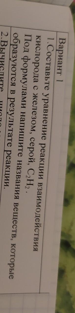 Составьте уравнение реакции взаимодействия кислорода с железом, серой, C2H2. Под формулами напишите названия веществ, которые образуются в результате реакции.