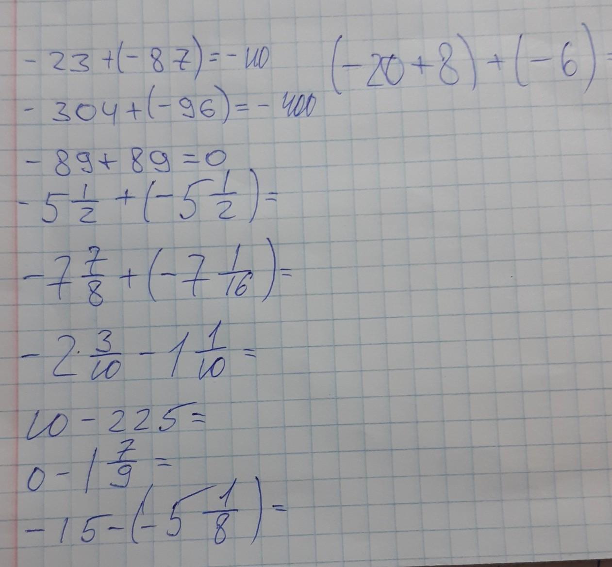 (-20+8) + (-6) = - 12 - 6 = -( 12+6) = - 18