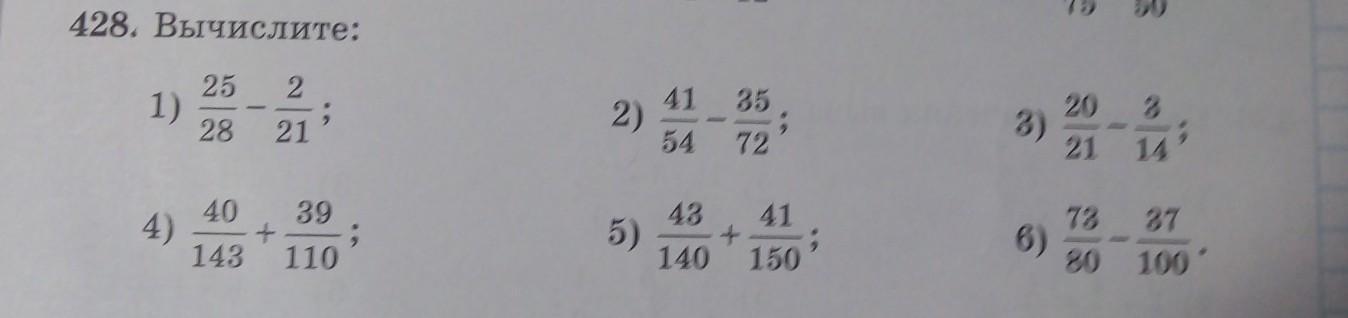 428. Вычислите: 25 2 41 35 20 1) 2) 3) 3 14 28 21 54 72 21 40 39 4) 43 41 5) + 140 150 73 6) 80 37 100 143 110