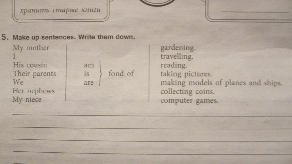Его двоюродный брат любит делать модели самолетов и кораблей.
