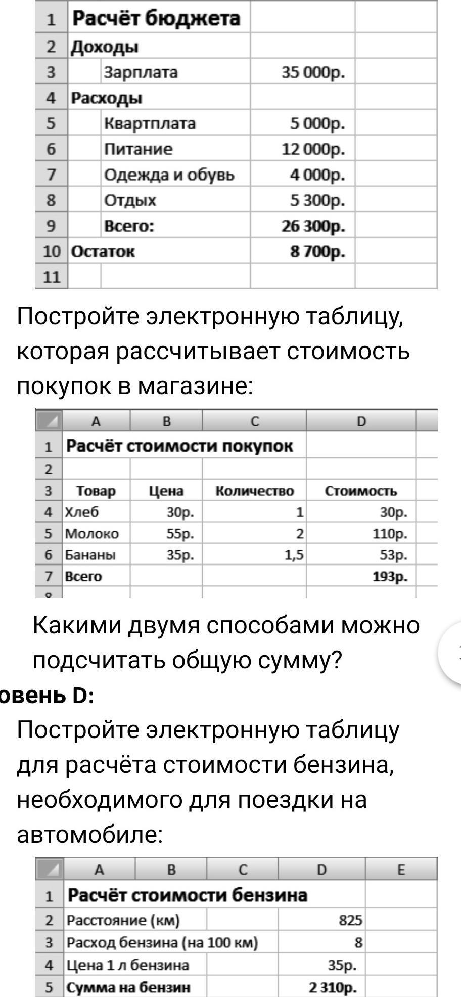 Постройте электронную таблицу для расчёта семейного бюджета: