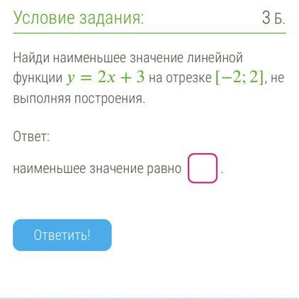 Найти наименьшее значение функции у = 2х + 3 на отрезке [-2; 2].