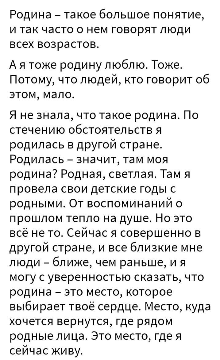 Сәлеметсіз бе, бұл менің Отаным туралы кішкентай әңгімем Менің Отаным Қазақстан ол өте әдемі онда көптеген әдемі және жайлы жерлер бар менің Отанымда көптеген білім беретін институттар мен балабақшалар бар көптеген көрікті жерлер Бәйтерек және т. б. мен өз Отанымды жақсы көремін онда барлық ұлттар сүйіспеншілікпен және жылулықпен қабылданады