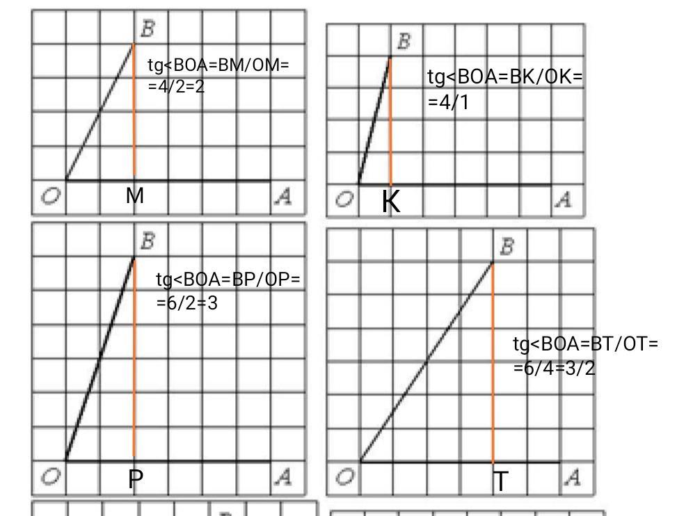 BH=4; OH=1; tgAOB=BH/OH=4/1=1