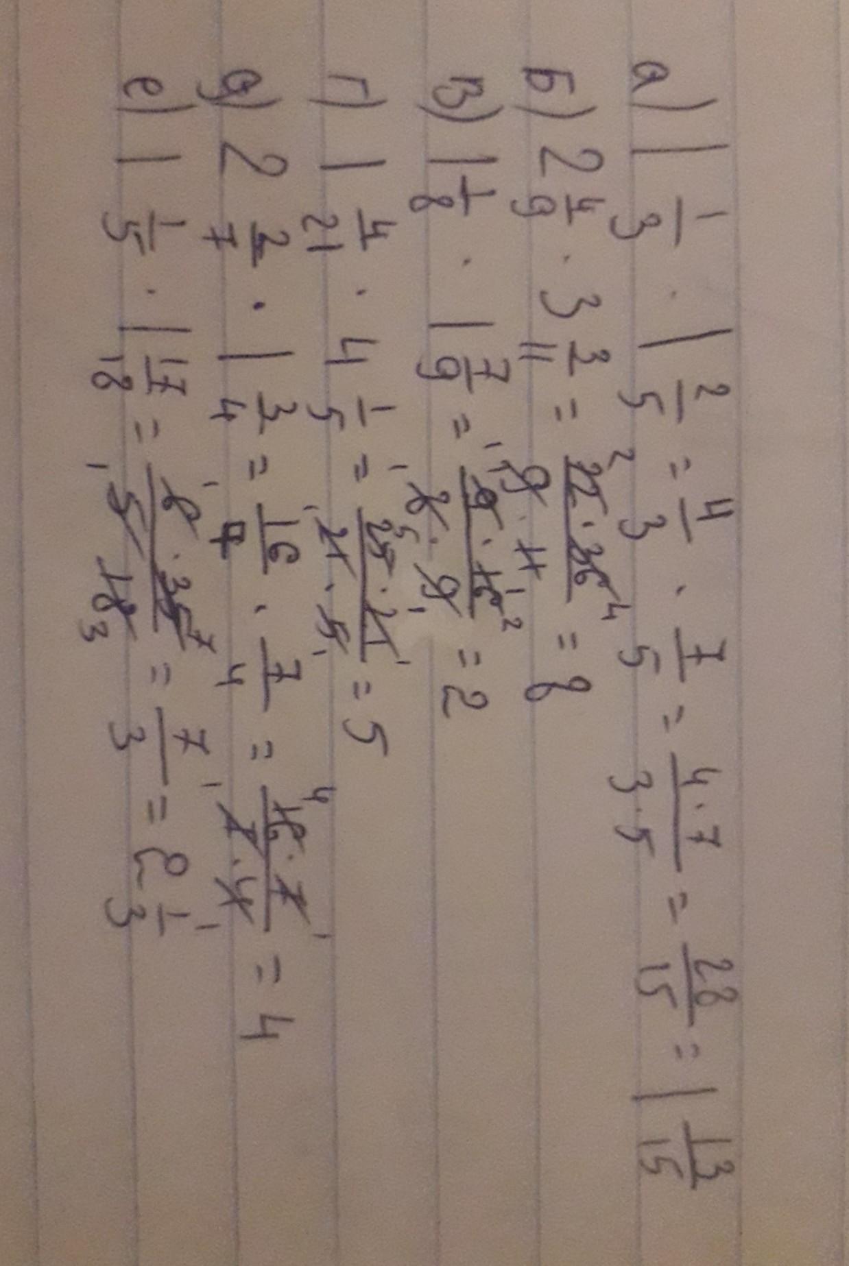 а) 1 1/3 * 1 2/5 = 4/3 * 7/5= 28/15 = 1 13/15