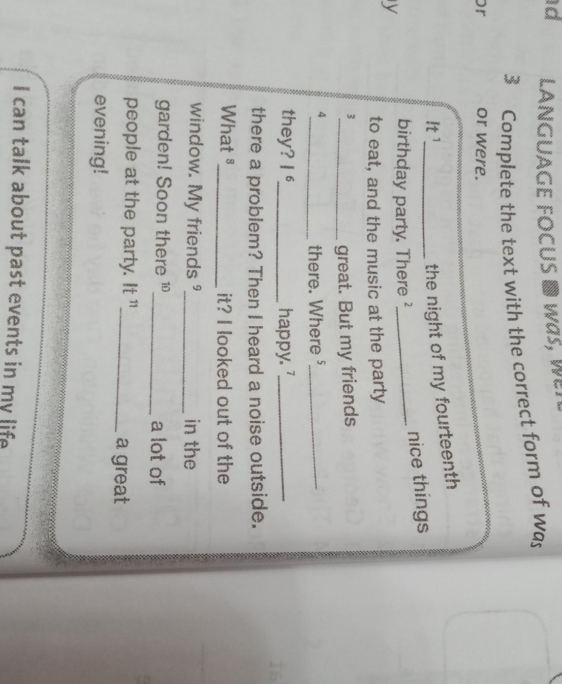1 was 2were 3was 4weren't 5were 6was 7were 8was 9were 10 were 11 was