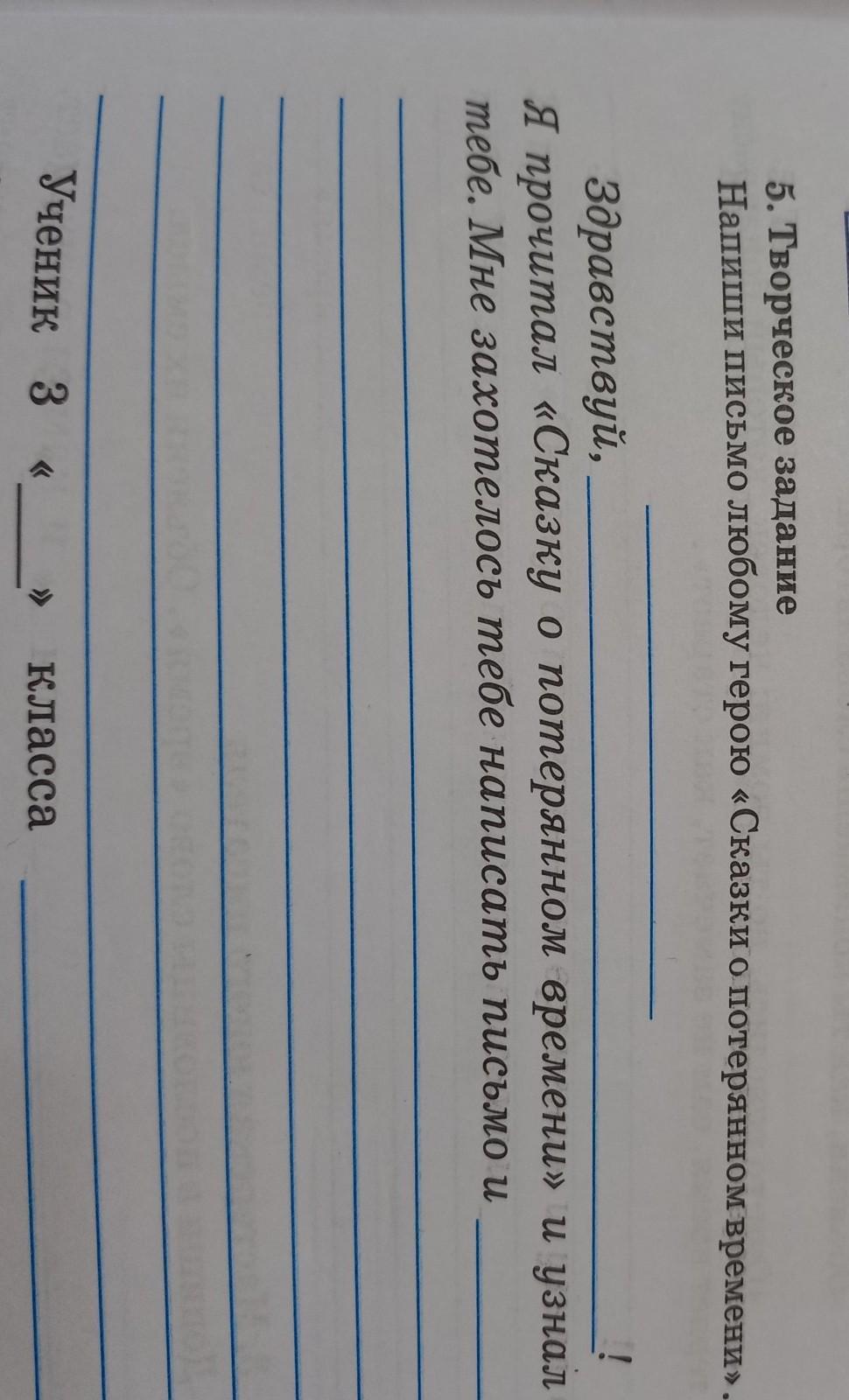 5. Творческое задание Напиши письмо любому герою «Сказки о потерянном времени».