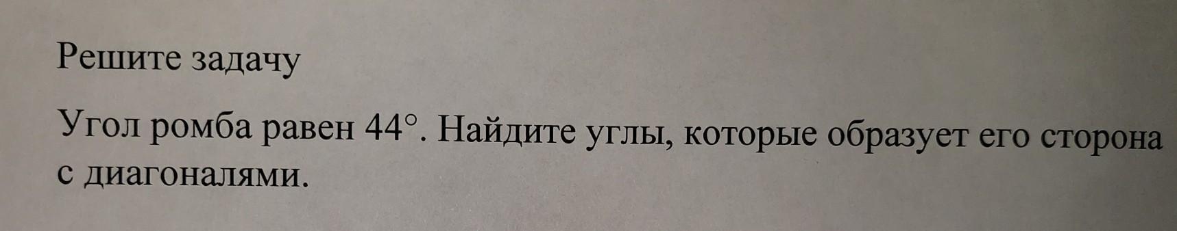 АВСД-ромб, АВ=ВС=СД=АД. ВД и АС- диагонали ромба. Диагонали ромба прямо перпендикулярны(вроде правильно сказала, но если нет, то образуют 90°). Рассмотрим треугольник АВО (О-точка пересеч. Диаг.), угол АВО=44°, угол АОВ= 90°, угол ВАО= 180-(44+90)=46°. ВД и АС - бис-сы, то угол В=44×2=88, угол В=углу Д=88°.