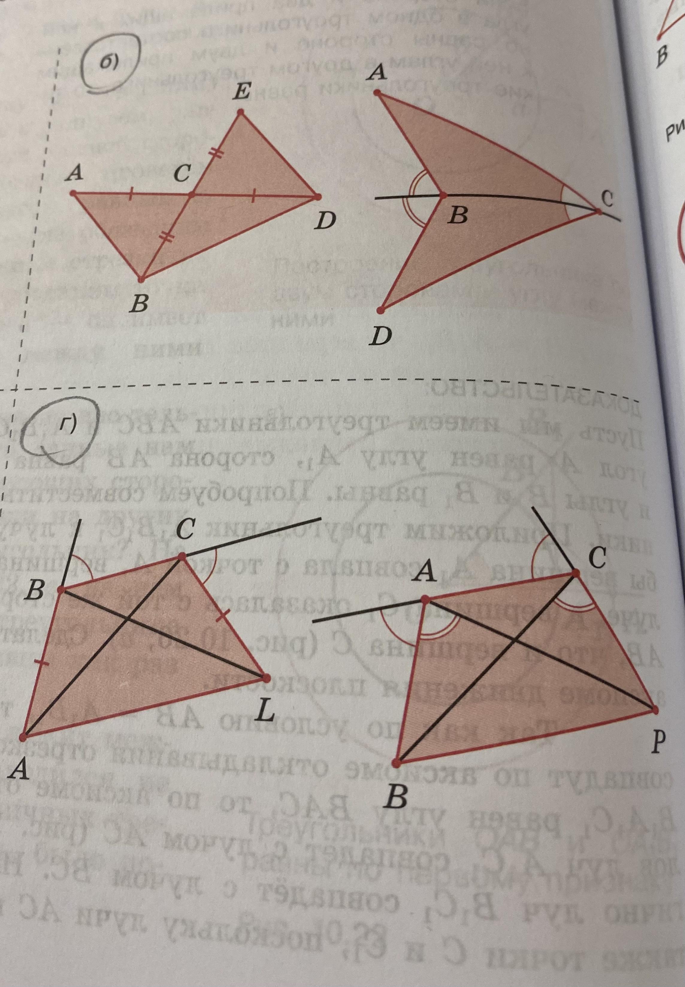 треугол. АВС и DВС равны, так как имеют общую сторону ВС и равные углы АВС= ВСD и АВС=DBC , так как их смежные углы равны между собой