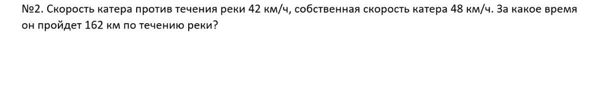 Скорость катера против течения реки 42 км /ч , собственная скорость катера 48 км/ч . За какое время он пройдёт 162 км по течению реки