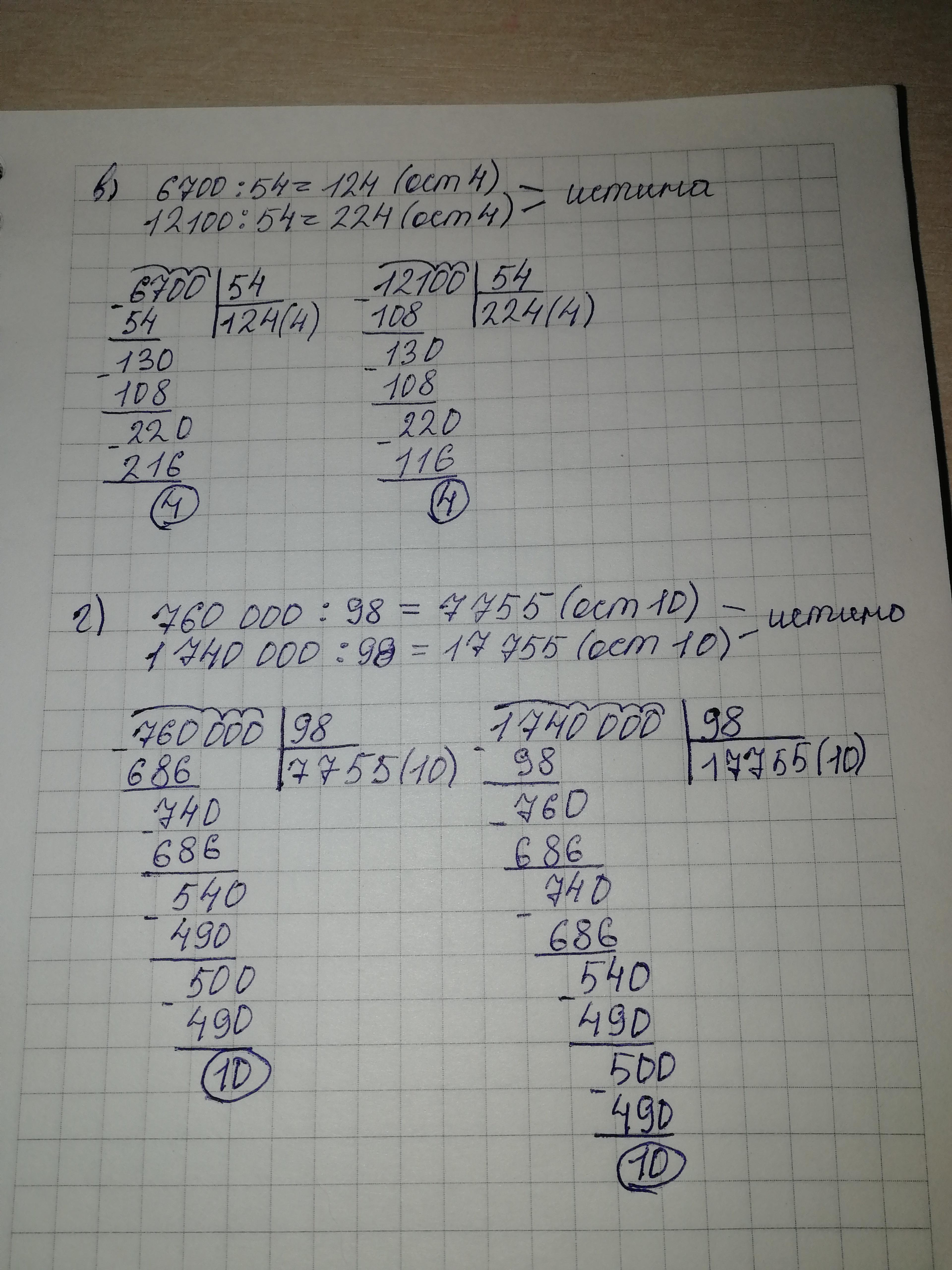 в) Числа 6700 и 12 100 дают одинаковые остатки при делении на 54.